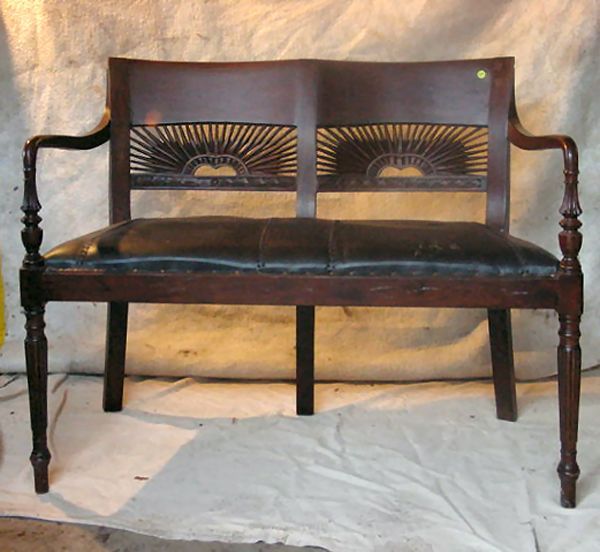 Early 1900 Sheraton Revival double settee, solid