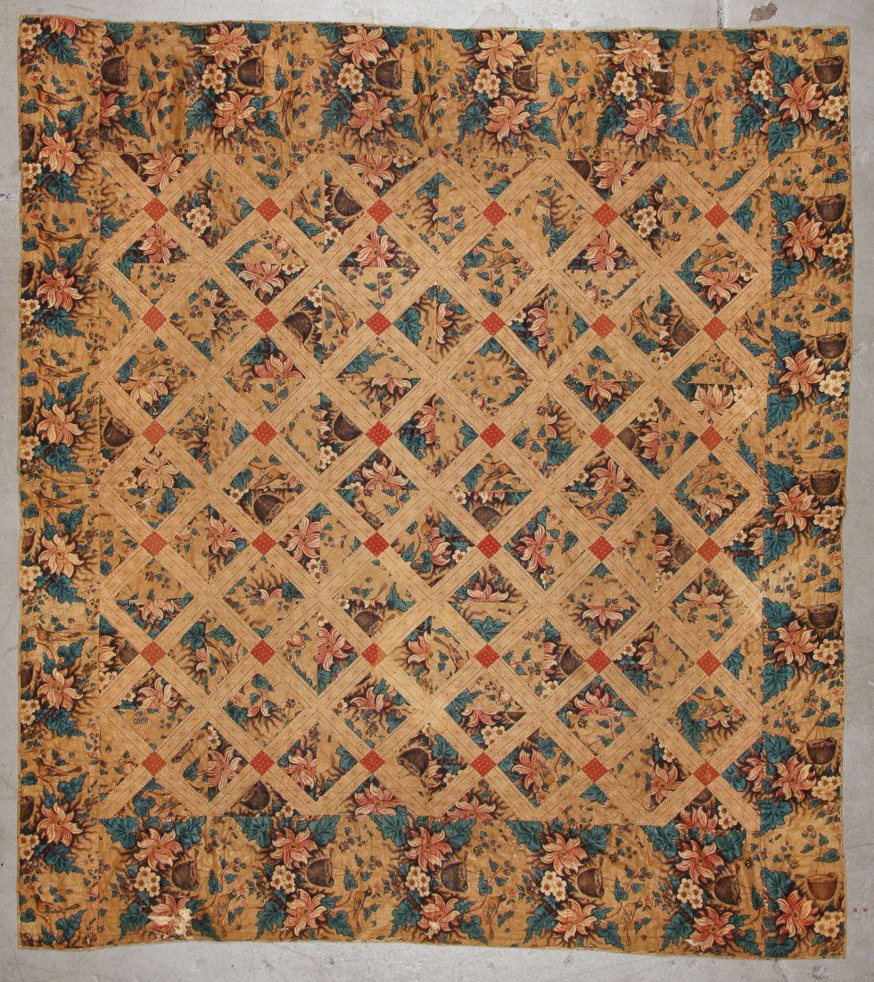Early 19th C Chintz Quilted Bedcover