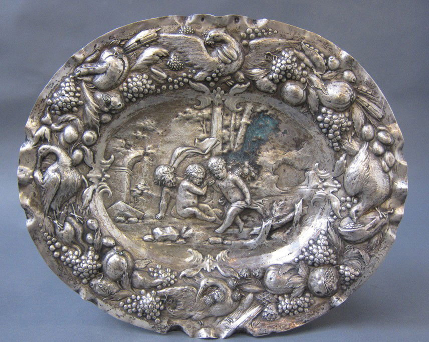 Antique Ornate Silver Plated Pierced Rim Tray c.1900Continental silver footed dish. Elaborate repousse decoration of peasants in a bucolic landscapeMar 01, 2026A Large Antique Circa 1900 Continental German 800 Silver Repousse Pierced BowlFeb 26, 2026A George III silver snuffer tray,Peruvian Silver Repousse ChargerFeb 26, 2026German 800 Silver Repousse Cherubs Large Box7 days LeftA GERMAN PEWTER PURIM PLATE. HALLE A. SAXE, 1750.3 days LeftGEORG ROTH & CO. .800 SILVER OVAL TRAY, C. 19006 days LeftAN MONUMENTAL PEWTER SEDER TRAY Germany, c.1820.3 days LeftSterling Reticulated Fruit BowlFeb 25, 2026S. Kirk & Son Co. Sterling Repousse Serving PlatterFeb 26, 202619th Century Hand Chased Silver on Copper Armorial Footed Tray10 hrs Left19th C Signed J.A. Theloi 1714 Grand Tour ChargerFeb 26, 2026EMBOSSED SPANISH STERLING SILVER PLATTER7 days LeftA LARGE SILVER PIDYON HABEN TRAY. Continental, 20th century.3 days LeftFrench silver pierced bowl.Feb 24, 2026