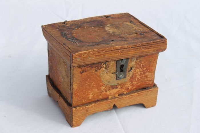 Early 19th century dove tailed and paint decorated dome top chest, original clasp and hinges, 24"Synesael Davies Auctions4.7(205)$30(2 bids)4 days Left