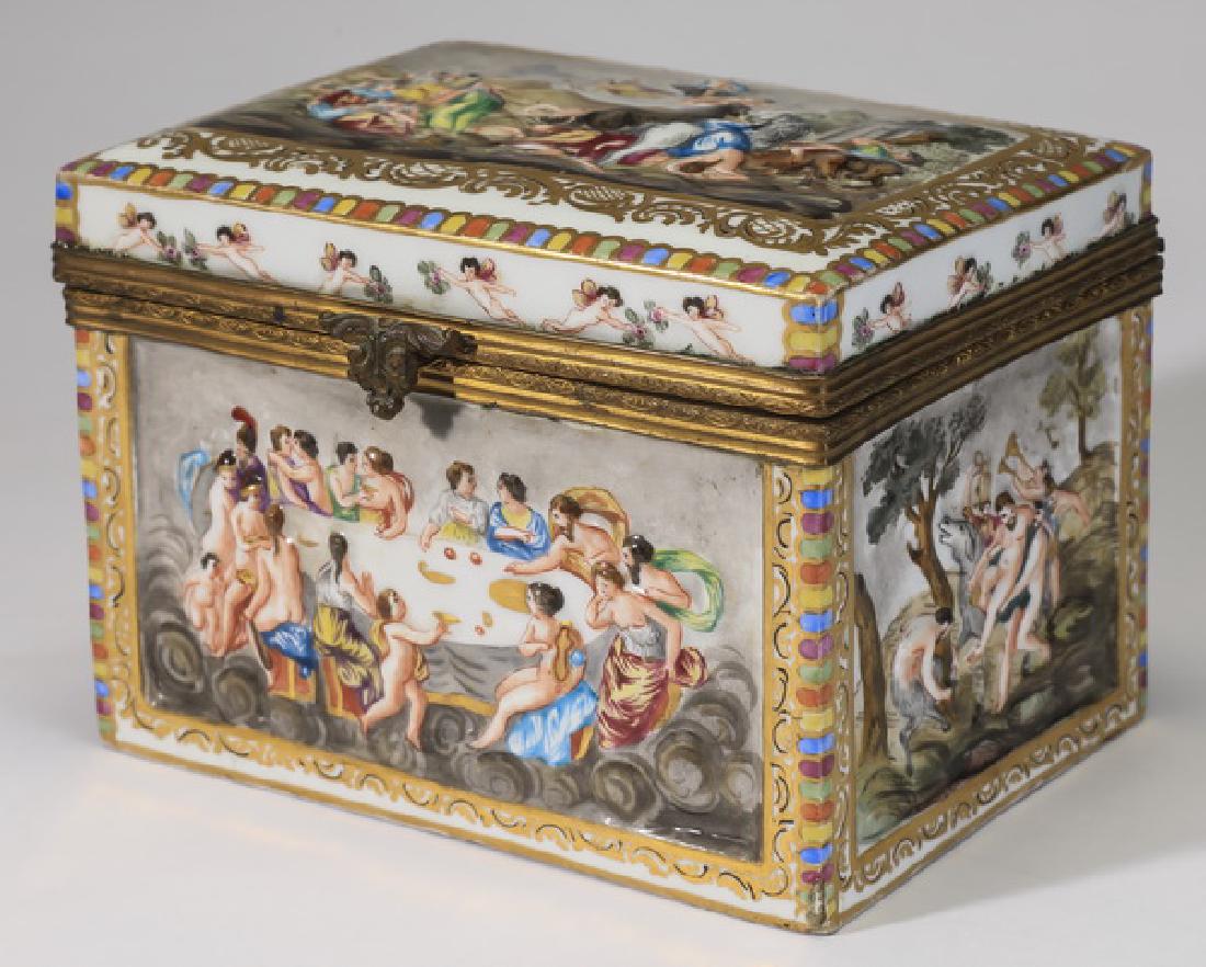 Meissen Germany Hand Painted Porcelain Bronze Mount Casket Table Box circa 1860Mar 15, 2026ANTIQUE FRENCH SEVRES STYLE PORCELAIN AND BRONZE BOXMar 07, 2026A Vienna style porcelain gilt bronze mounted dresser box3 days LeftCapodimonte Style Hand Painted Cherubs & Goat Box5 days LeftFRENCH SEVRES STYLE PORCELAIN AND BRONZE TRINKET BOXMar 07, 2026A GOLD-MOUNTED GERMAN PORCELAIN RECTANGULAR SNUFF-BOX AND COVER CIRCA 1770-1775, PROBABLY BERLIN1 day LeftANTIQUE FRENCH SEVRES STYLE PORCELAIN AND BRONZE BOXMar 07, 2026Ornate Handpainted c1900 European Porcelain Jewelry Dresser Box w Courting SceneFeb 17, 2026Continental Porcelain Trinket Box w/ Patinated Bronze Hinges, 18th-19th CenturyMar 15, 2026A GOLD-MOUNTED GERMAN PORCELAIN SHAPED SNUFF-BOX AND COVER 19TH CENTURY1 day Left18th C. German Gilt Bronze Mounted Porcelain Snuff BoxMar 03, 202618th C. German Gilt Bronze Mounted Porcelain Snuff BoxMar 03, 202619th C. Sevres Porcelain Jewelry Box3 days LeftA GOLD-MOUNTED GERMAN PORCELAIN SNUFF-BOX AND COVER 19TH CENTURY, FAINT BLUE CROSSED SWORDS MARK TO1 day LeftA Large 19th C. Meissen Hand Painted Porcelain Jewelry Box3 days LeftLarge 19th C. Sevres Porcelain Jewelry Box3 days Left