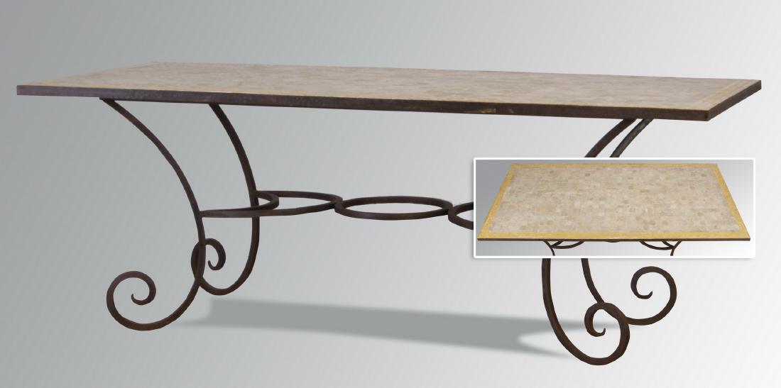 LARGE ITALIAN PAINTED CECCARELLI MAJOLICA-TOP WROUGHT IRON PATIO TABLEFeb 22, 2026SPANISH BAROQUE STYLE MAHOGANY & WROUGHT IRON DINING TABLE, 84"LFeb 22, 2026FRENCH MARBLE-TOP PAINTED CAST IRON BISTRO TABLEFeb 21, 20261950s French Modern Wrought Iron Travertine Bistro TableFeb 22, 2026FRENCH MARBLE-TOP PAINTED WROUGHT IRON PATIO DINING TABLEFeb 22, 2026Vintage French Oval Dining Table Pine Top Iron Base Country StyleMar 01, 2026FRENCH MARBLE-TOP CAST IRON BISTRO TABLEFeb 21, 2026A LIVER-COLOURED MARBLE AND WROUGHT IRON CENTRE TABLE, MODERNMar 03, 2026Richard Bailey 1960 Mosaic Marble Coffee Table with Iron BaseFeb 22, 2026Vintage Gilt Wrought Iron Long Coffee TableFeb 27, 2026Renaissance Wood and Wrought Iron Trestle TableSPANISH BAROQUE STYLE OAK TRESTLE REFECTORY / DINING TABLE, 115"LFeb 22, 2026Early 20th Century Spanish Walnut and Iron Baroque Coffee TableMar 01, 2026MONUMENTAL RUSTIC WOOD-TOP WROUGHT IRON COFFEE TABLE, 84"LFeb 21, 2026FRENCH IRON AND TILE TABLE C 1960.Feb 26, 2026Maitland Smith Gilded Iron Faux Bois Tray Top Statement Tole Cocktail TableFeb 20, 2026
