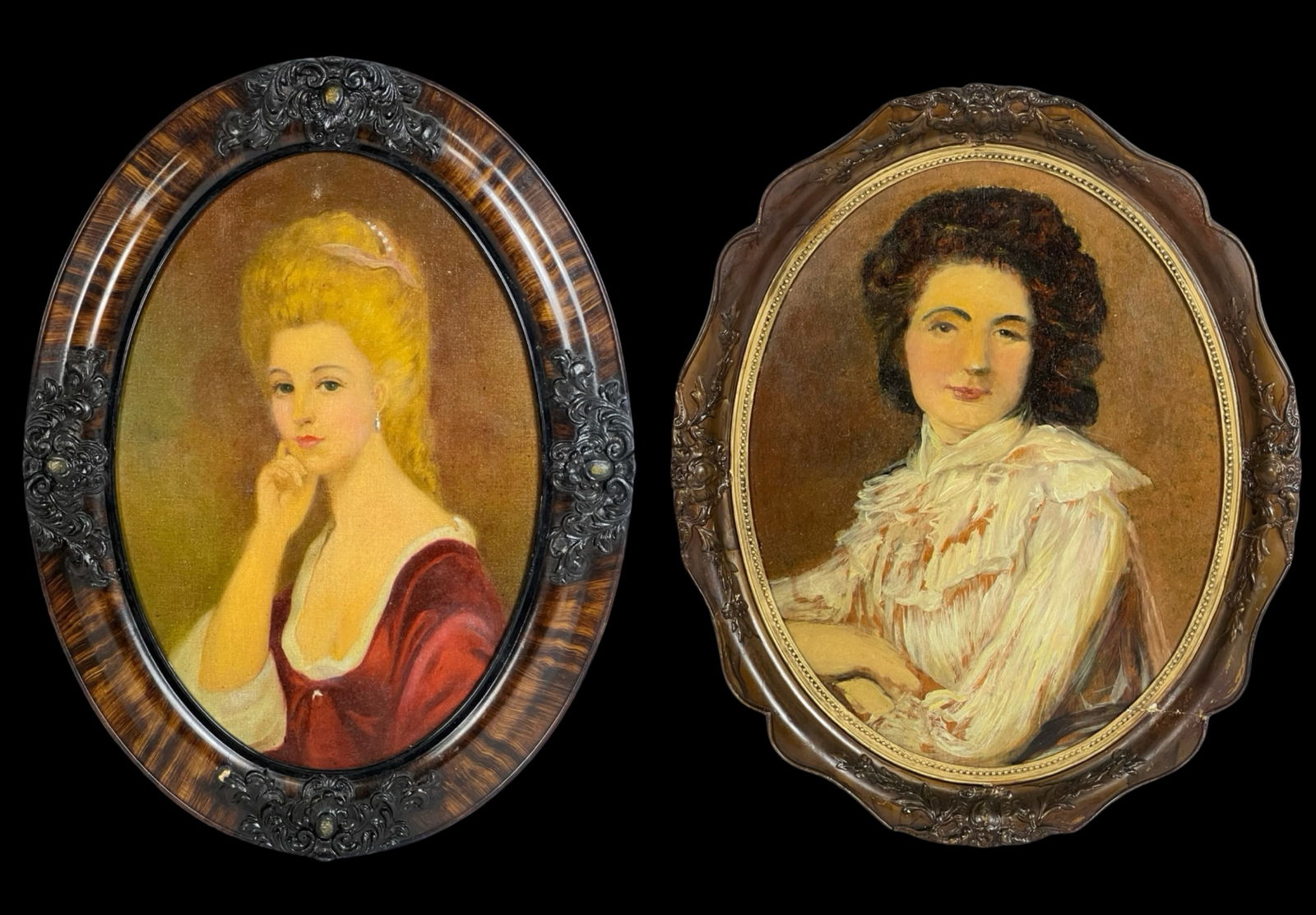 early 20th C.- Two Lady Portraits in Oval Frames