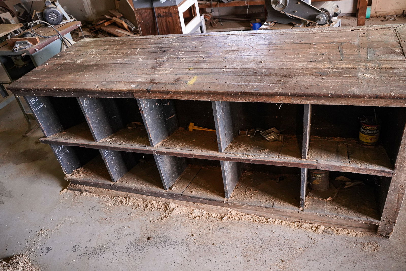 Early 20th c. Workbench with Cubby Storage