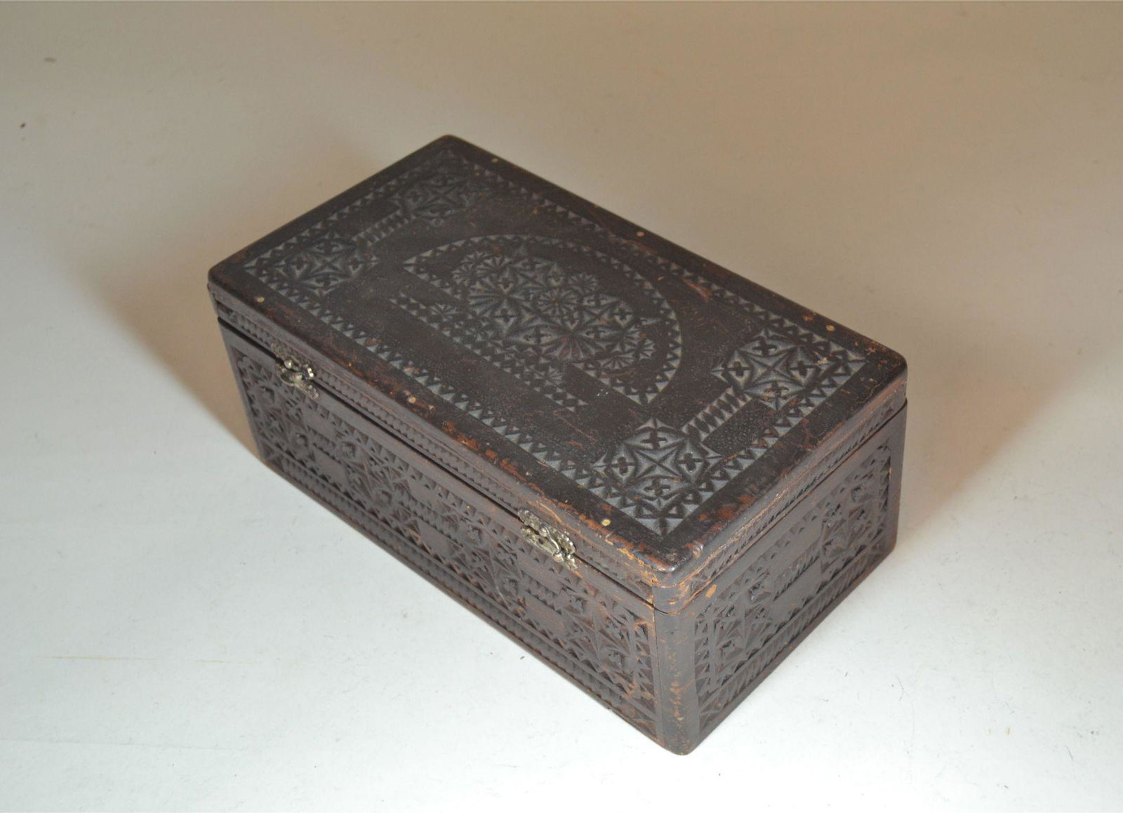 Early 20th Century Chip Carved Document Box