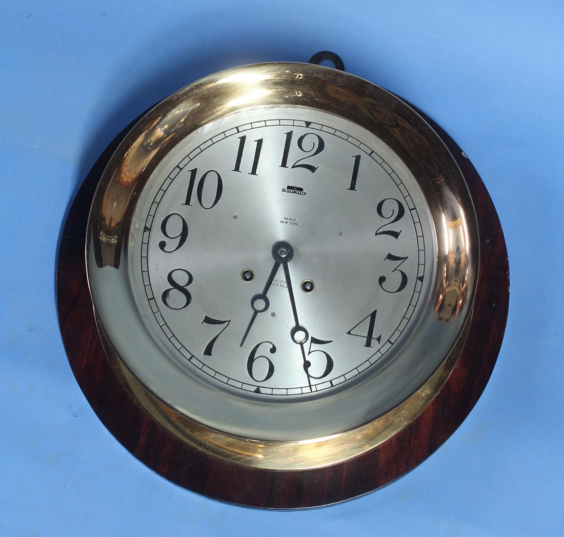 Antique Brass Carriage Clock with Travel Case, c.1910 – Swiss MovementAntique French Mahogany & Brass Inlaid Mantel Clock by Marti c.1900French Art Deco Oval Mahogany and Brass Wall ClockMar 26, 2026VINTAGE BRASS CARRIAGE CLOCKFeb 28, 2026ENGLISH INLAID ROSEWOOD OCTAGONAL WALL CLOCK3 days LeftLarge Chelsea Bronze Ship's ClockFeb 17, 2026CHELSEA U.S. MARINE CORPS EIGHT-DAY SHIP'S CLOCK Boston, 20th Century Dial diameter 6". Back plateFeb 26, 2026NICKEL PLATED SETH THOMAS SHIP'S BELL CLOCK3 days Left15" Nautical Timepiece with Solid Wood and Brass Ship Wheel DesignFeb 26, 2026John Dwerrihouse, a Georgian gilt metal and underpainted horn pair cased fusee pocket watch,7 days LeftVintage New England Clock Co Wall Clock Case & Movement only, missing parts, 22h x 16w x 5d inchesChelsea Ship's Bell Clock 4.5 Inch MarinerFeb 25, 202619TH C. JEWELER'S SHOP REGULATOR CLOCK4 days LeftCHELSEA CLOCK CO US GOVERNMENT NAVAL SHIP CLOCKMar 01, 2026A Georgian gilt metal and horn pair cased fusee pocket watch,7 days LeftA Continental gilt metal horn cased key wind open faced pocket watch,7 days Left