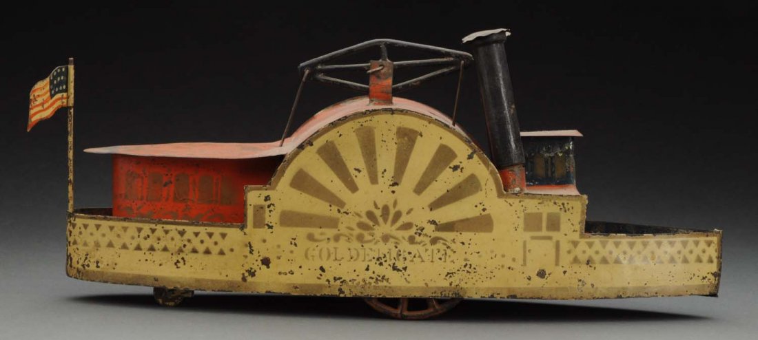 Early American Tin Clockwork Sidewheeler.