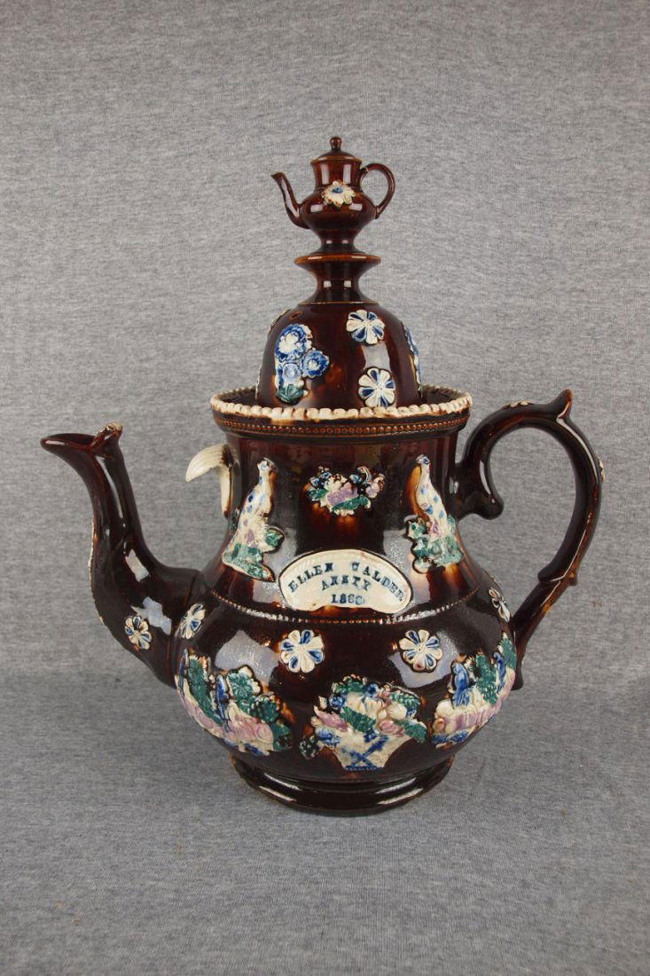 Early Bargeware large coffee pot "Ellen Calder, Amit