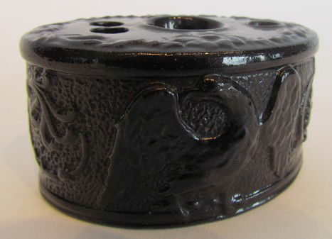 Early Black Salt Glaze Inkwell with Eagles