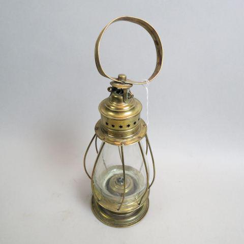 Sold(2) BRITISH MARINE LANTERNSLot of (2) Ship's Lanterns, incl: Early 20th c. brass cased lantern with swing handle, original burner marked 'British Make' and 'Full Inch', 15" high (without handle extended), 7 1/8" x 8", surface cSee Sold Price
