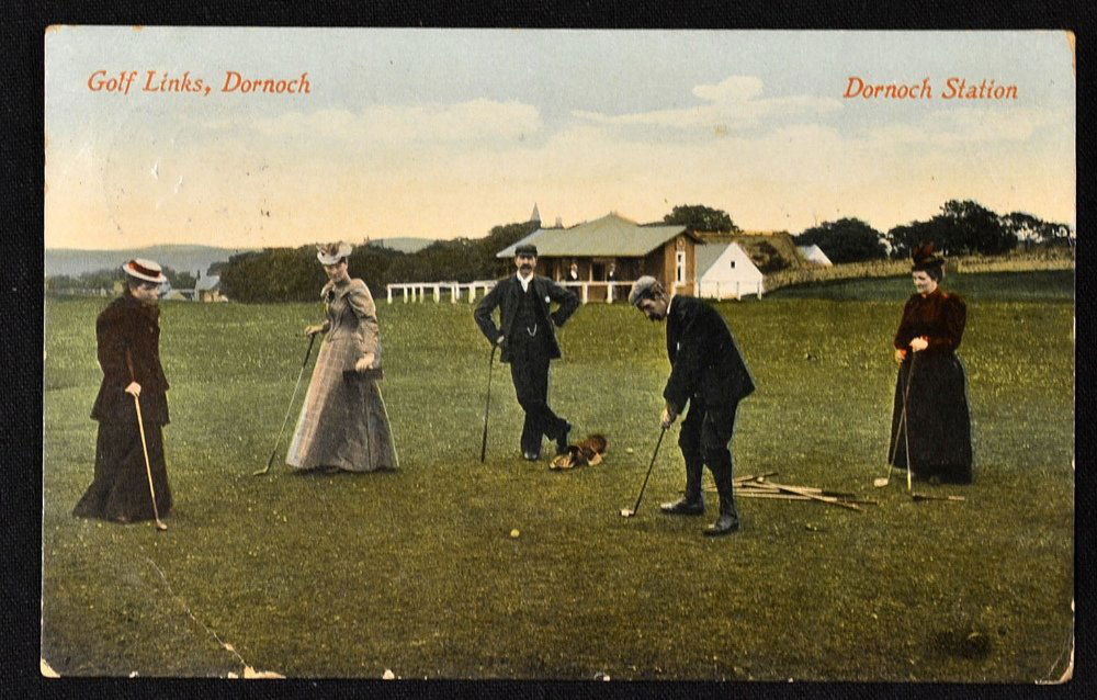Early coloured Dornoch golfing postcard title