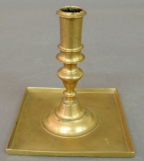 Early Continental brass candlestick with a square