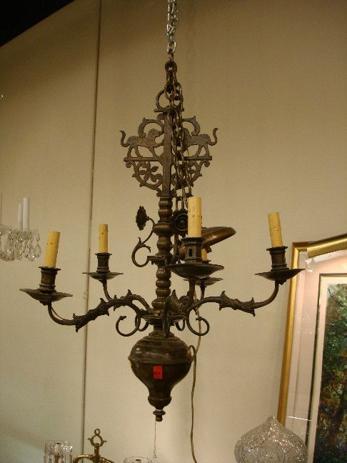 Early 20th Century Eight Arm Bronze Chandelier With Italian Crystal AccentsBidhaus4.2(847)$1006 days Left