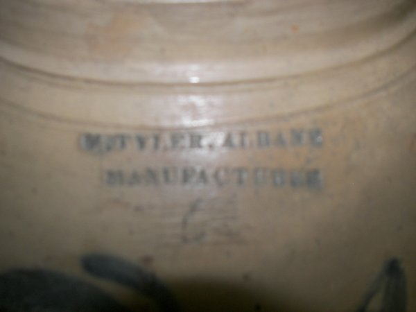 Early earthenware blue decorated jug M. Tyler Man