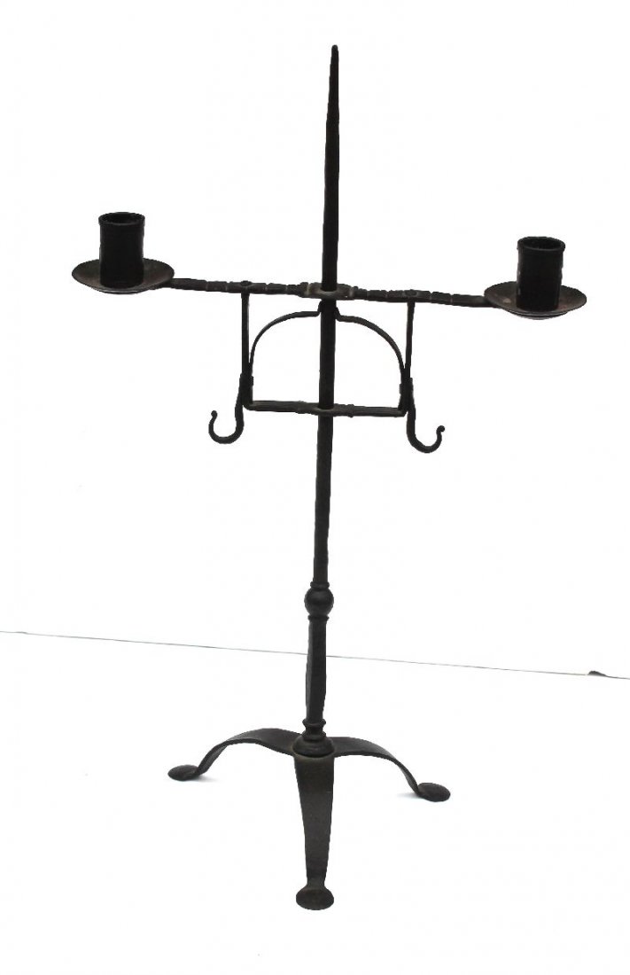 early form iron double adjustable table top candle