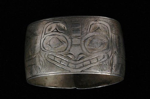 Early Haida Silver Bracelet - Double Bear Design c