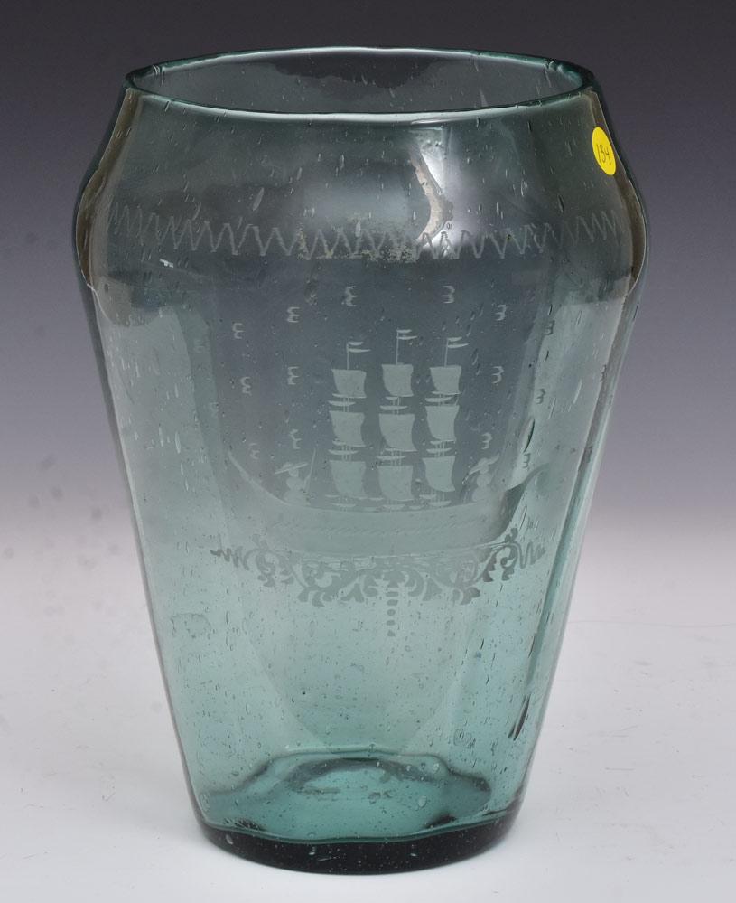 BENGT EDENFALK FOR SKRUF ETCHED CRYSTAL ART GLASS VASE BON VOYAGE SWEDEN MCM VASE SIGNEDPeddlers Auction$104 days Left