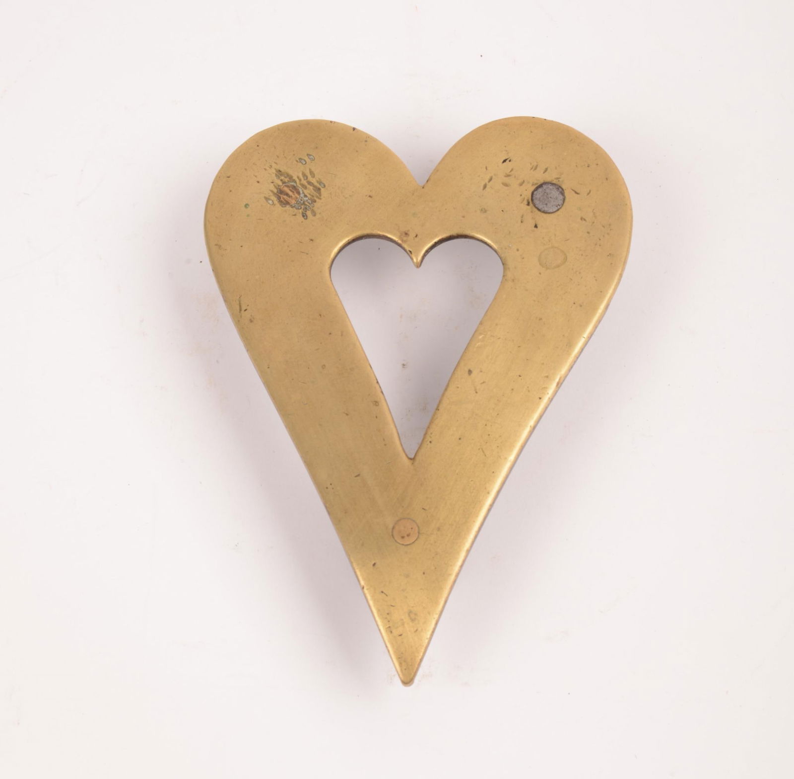 Early Heart Form Brass Trivet.
