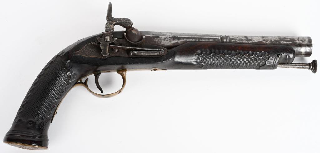 UNSIGNED ENGLISH FLINTLOCK HORSE PISTOL.Mar 01, 2026ENGLISH BRASS BARREL FLINTLOCK PISTOL.Mar 01, 2026Excellent 18th C. MIQUELET LOCK FLINTLOCK PISTOL Gold InlaidMar 28, 2026IRISH PERCUSSION CONVERSION PISTOL, BY FOWLER OFMar 01, 2026Rare Possible Confederate FLINTLOCK Military PISTOLMar 28, 2026East India Company New Land Pattern Flintlock Pistol London Marked Flintlock Pistol With Brass Barrel / Mounts And Ketland LockMar 14, 2026INNOVATIVE THREE ROTATING BARREL FLINTLOCK PISTOL7 days LeftEarly 19th C. English Flintlock Blunderbuss / Trade Gun for Indian Market Brass Flared BarrelMar 14, 2026ANTIQUE BELGIAN PERCUSSION BOXLOCK POCKET PISTOLMar 06, 2026Early Percussion Pistol Mark: READ On Lock PlateMar 07, 2026English Flintlock Pistol by WogdonEnglish Brass Box Lock Flint Pocket Pistol by I Hill with Snap BayonetA 25 BORE AUSTRIAN WHEEL-LOCK HOLSTER PISTOL, CIRCA 1630Mar 14, 2026HIGH QUALITY & CONDITION FLINTLOCK GREAT COATMar 01, 2026AN OTTOMAN FLINTLOCK PISTOL, TURKEY, 19TH CENTURYMar 06, 2026