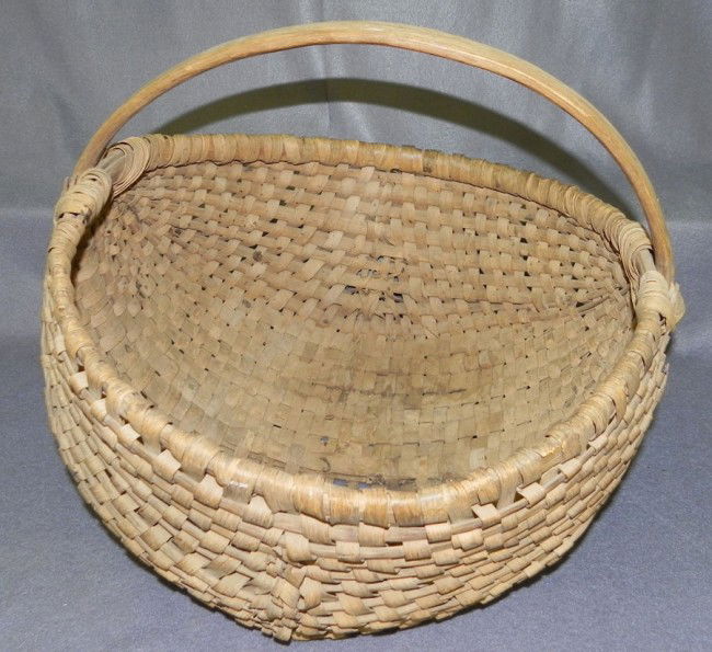 Early large split oak egg basket with handle.