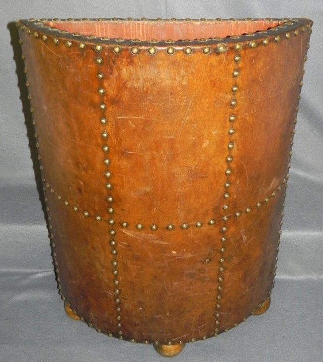 Early leather cane or umbrella stand.