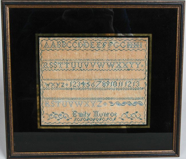 EARLY NEEDLEWORK SAMPLER, EMILY MUNROE, under eglo
