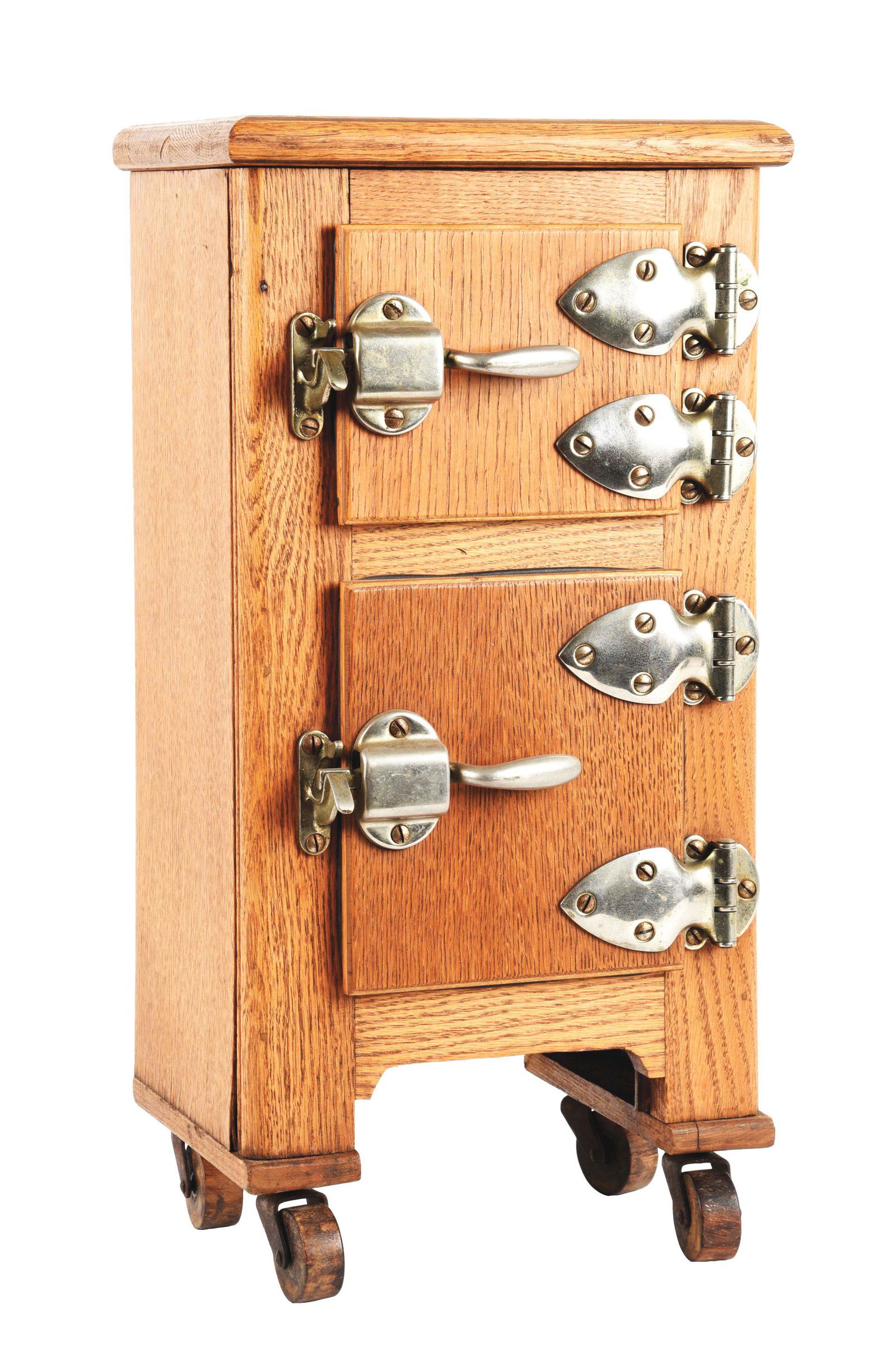 EARLY OAK SALESMAN SAMPLE REFRIDGERATOR/FREEZER.