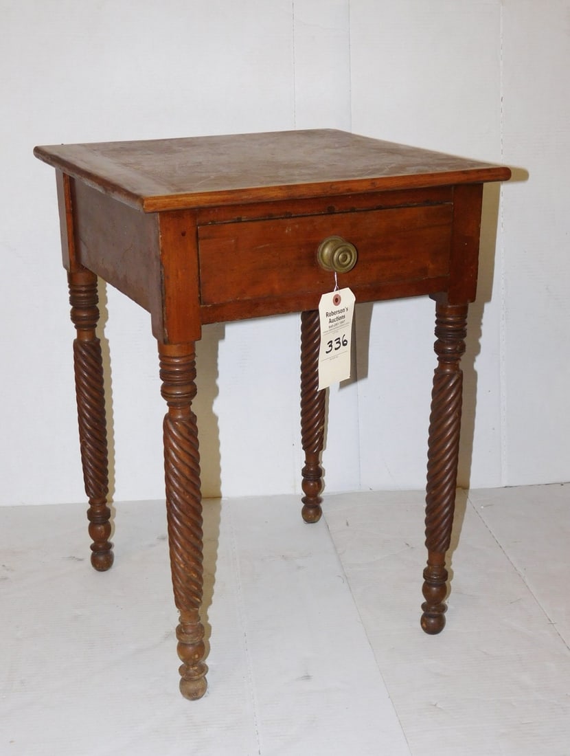 AMERICAN LATE FEDERAL CHERRY STAND TABLE5 days LeftAntique American Country Pine Or Maple Work Table With Turned Legs And Drawer 19"X30"X30"Mar 08, 2026Southern Cherry One-Drawer Work Table with Spiral Turned Legs, ca.1840-607 days LeftNEW ENGLAND PINE AND POPLAR TAVERN TABLE5 days LeftBritish Pine 2 Drawers Writing Table / Desk2 days LeftVIRGINIA LATE FEDERAL CHERRY STAND TABLE5 days LeftGate Leg Table5 days LeftEarly New England Tavern Table.Mar 14, 2026New England Pine and Maple Tap TableMar 15, 2026Walnut pedestal base to George StandMar 09, 2026Maple One Drawer Night Stand3 days LeftNEW ENGLAND PINE STRETCHER-BASE WORK / SIDE TABLE5 days LeftFrench side table desk with barley twist legs6 days LeftMaple One Drawer Stand3 days LeftPennsylvania Cherry Sheraton StandMar 08, 2026Maple & Cherry 2 Drawer Table, 19th c, Column Leading to 4 Downswept Legs, 28"h x 24"w x 19 1/2"dMar 10, 2026