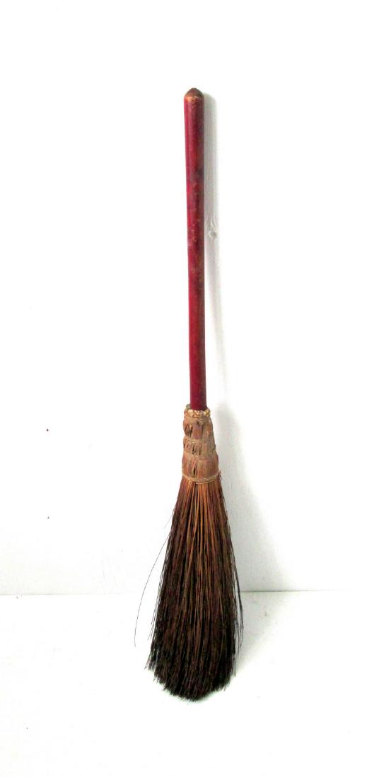 Early Painted Corn Husk Hearth Broom