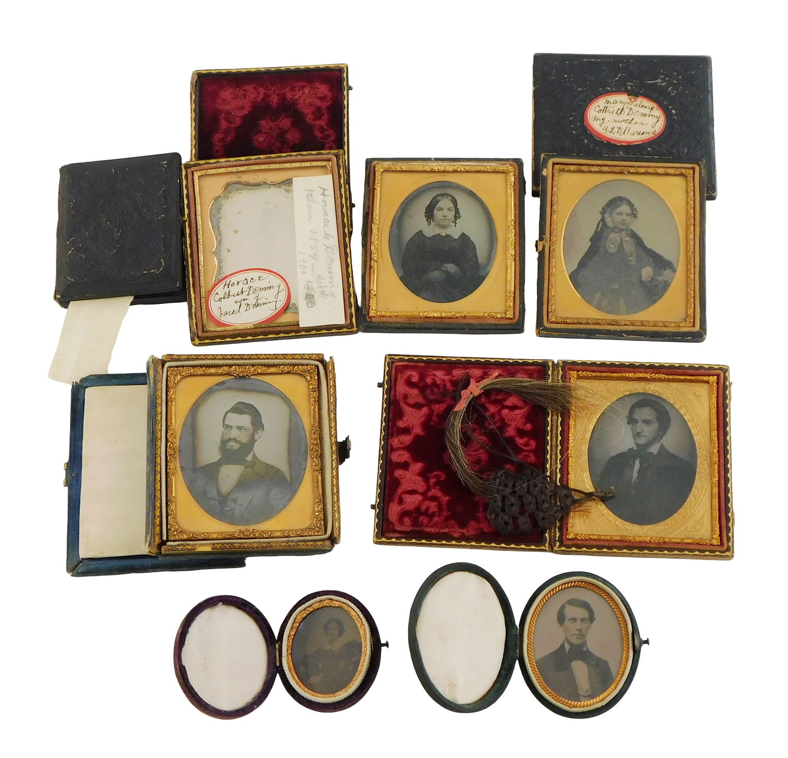 EARLY PHOTOGRAPHY: Eight early photo portraits, daguerreotype, tintype, ambrotype, etc, all in