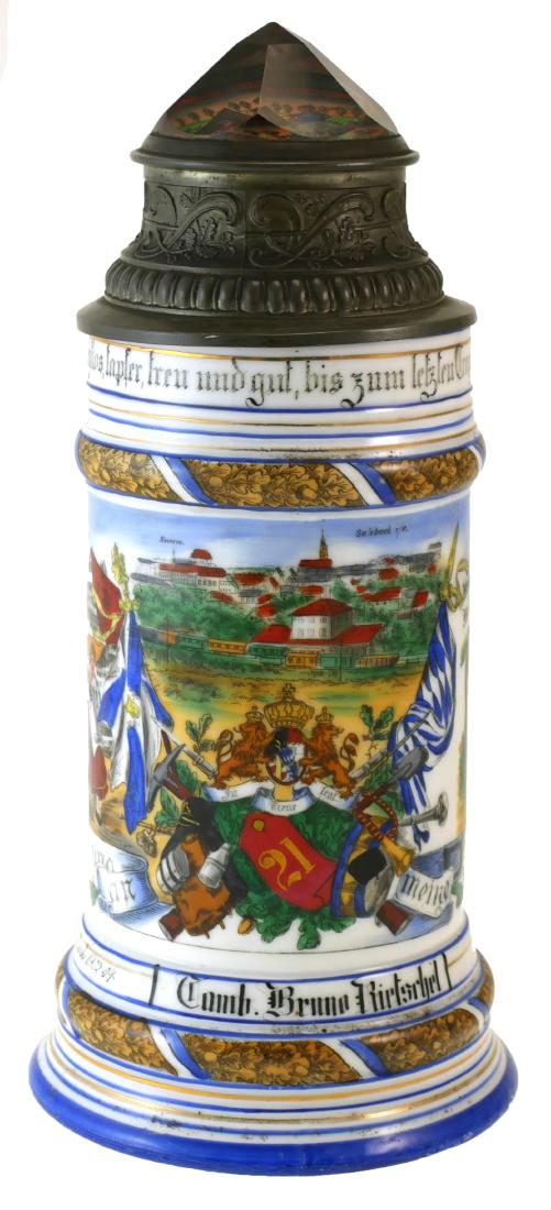 Small German Beer SteinMar 17, 2026Regimental Double Screw Off Lid w Military SceneMar 21, 2026Regimental No 121 Ludwigsburg Gefreiter SteinMar 21, 2026Regimental Feld Art No 8 Saarlouis SteinMar 21, 2026German Regimental Stein Field Artillery Lithophane7 hrs LeftRare Occupational Mettlach Miners Stein & LidMar 21, 20261909 German Regimental Lidded Stein With Lithophane6 days LeftRegimental Feld Art Nr 14 Karlsruhe SteinMar 21, 2026Regimental Inft Stein BayreuthMar 21, 2026Regimental Unteroffizier Stein Hessen 9Mar 21, 20261L Munich Child Bavarian Shield Stein Gambrinus LdMar 21, 2026Mettlach Postman Drinking from Stein Barmaid LidMar 21, 2026HR Munich Scenes, Child & Bavarian Colors SteinMar 21, 2026Regimental Jager No 3 Stein w Large Horse FinialMar 21, 2026WWI German Bavarian Named Regimental SteinMar 07, 2026Regimental Pionier Signalist Stein w Prism LidMar 21, 2026