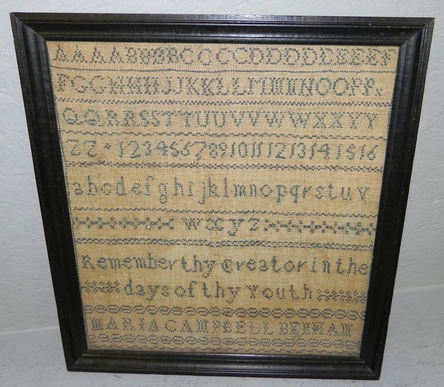 Early sampler, signed Maria Campbell Belham.