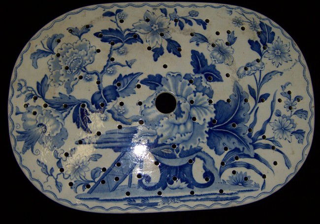 Early soft paste English strainer. 9" x 13".