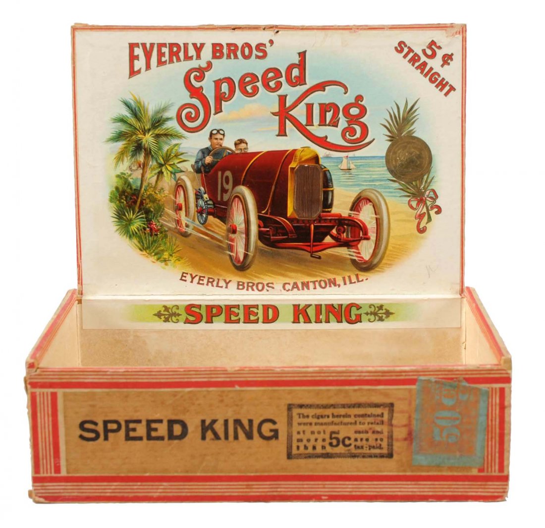 SoldRichfield Oil Early Racecar Cigar Box2-piece copper over plaster. Very good shape with only minor wear. Very tough piece to find with a great look. Measures: 4.5"X10" Rating: 8.75 Est: $600-$1000See Sold Price
