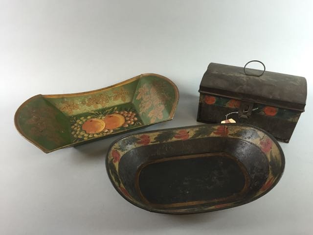 Lot - 2 Mahogany Jewelry Boxes, Poker Chips, Etc.4 days LeftLot Painted Wooden Eggs And Misc. HousewaresMar 04, 2026Lot 6 19th C Lithographed Tin Christmas BoxesMar 07, 2026COUNTRY TREENWARE BOWLS AND CARRIER, LOT OF THREEMar 06, 2026ASSORTED TIN LITHOGRAPHED BISCUIT AND TOBACCO TINS, LOT OF FOURMar 05, 2026ASSORTED FOLK ART PAINT-DECORATED DIMINUTIVE TOLEWARE TRAYS, LOT OF EIGHTMar 04, 2026Lot of 3 Tole Trays w/ Flowers, inc. Soviet Union.4 days LeftA lot of three variously decorated cut crystal and opaline glass objects344 Lots AwayEstate Lot of 5 Antique Chinese & Bronze: Box, Bottle, Tray, Vase & Leather WalletMar 15, 2026CAST-IRON "BELL SYSTEM" AND OTHER LEAD-MELTING POT WITH DIPPERS, LOT OF THREEMar 06, 2026Lot of 3 pottery pieces: Cookson Pottery hexagonal cache pot, French Alsatian glazed ceramic cakeMar 07, 2026LOT OF BISCUIT AND CHOCOLATE TINS3 days LeftThree Tole Bread / Apple TraysMar 07, 2026Silver Plate Lidded Boxes Plateau Tray and Brass Stamp Box (5)Mar 28, 2026A Group of Three Metal Trays4 days LeftCollection of Vintage Toleware, Boxes, etc.Mar 08, 2026