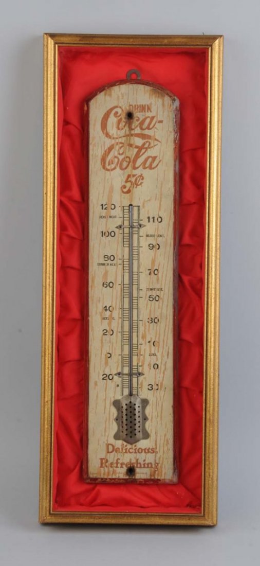 Early Wooden Coca-Cola Thermometer.