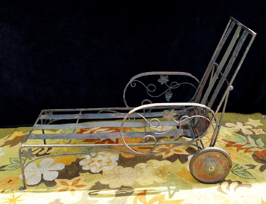 Sold2 SALTERINI WROUGHT IRON CHAISE LOUNGE CHAIRS C.1940Two Salterini wrought iron garden chaise lounge chairs circa 1940. Ht: 40" Wd: 30" Dpth: 69"See Sold Price