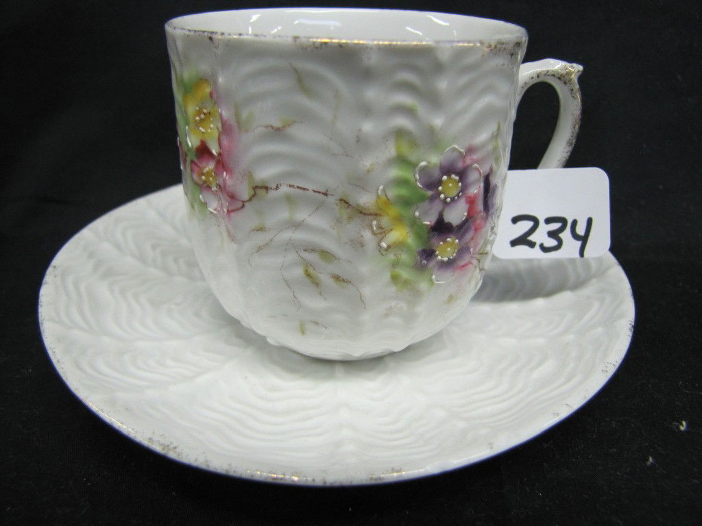 19TH C. FLOWER INCRUSTED CUP AND SAUCER