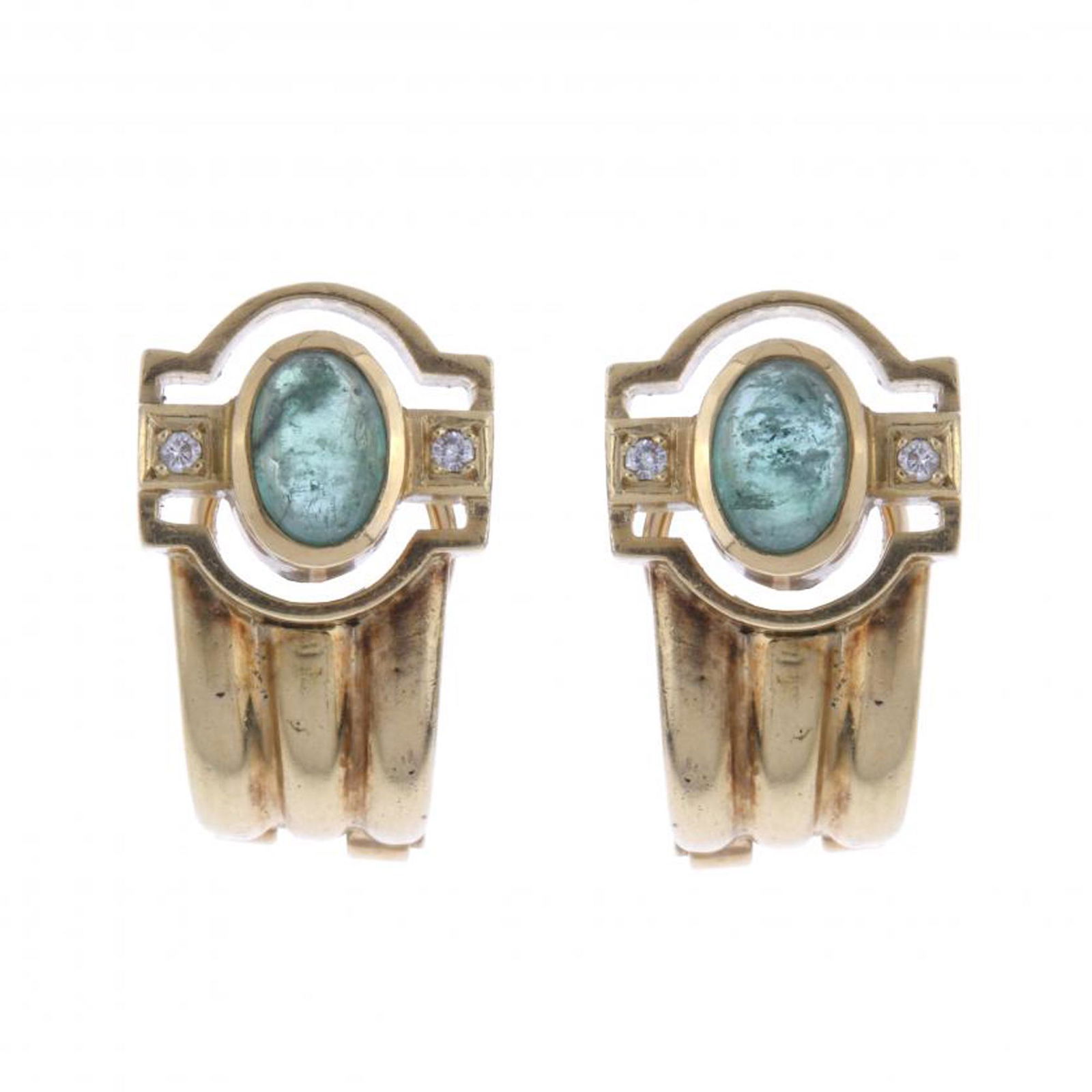 18kt Yellow gold emerald and diamond earrings