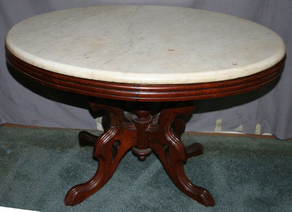 EASTLAKE, OVAL MARBLE TOP TABLE, WALNUT, C1900