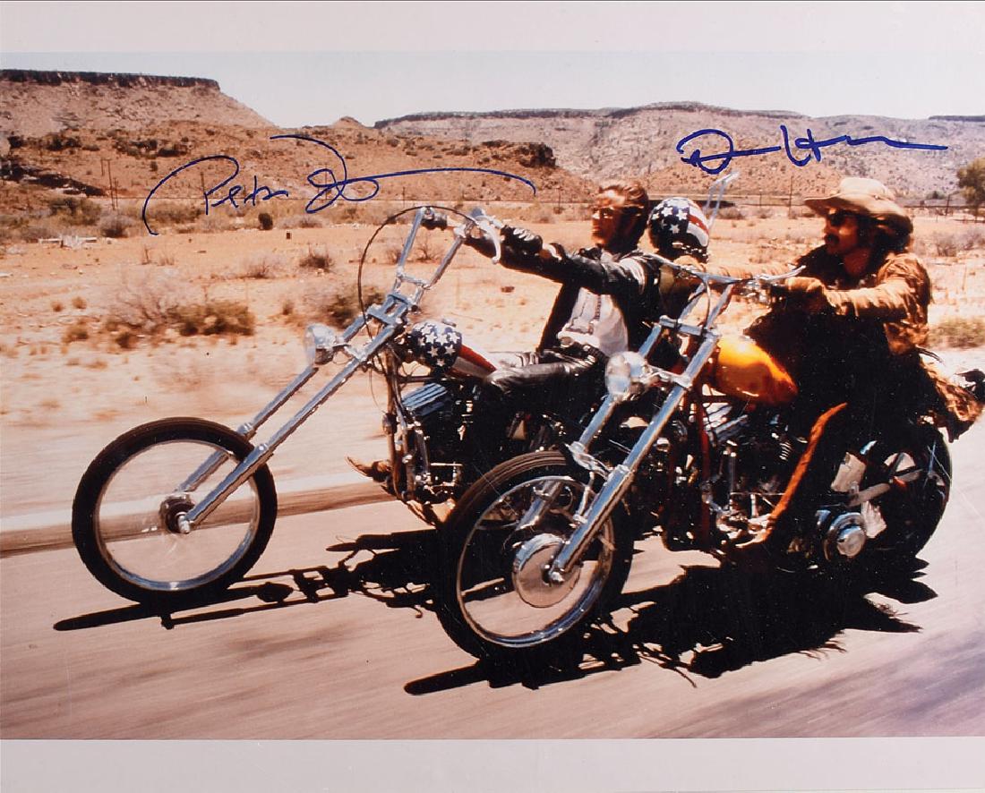 SoldEasy Rider cast signed photographAn Easy Rider cast signed 8x10 by Peter Fonda and Dennis Hoper both now deceased with COASee Sold Price