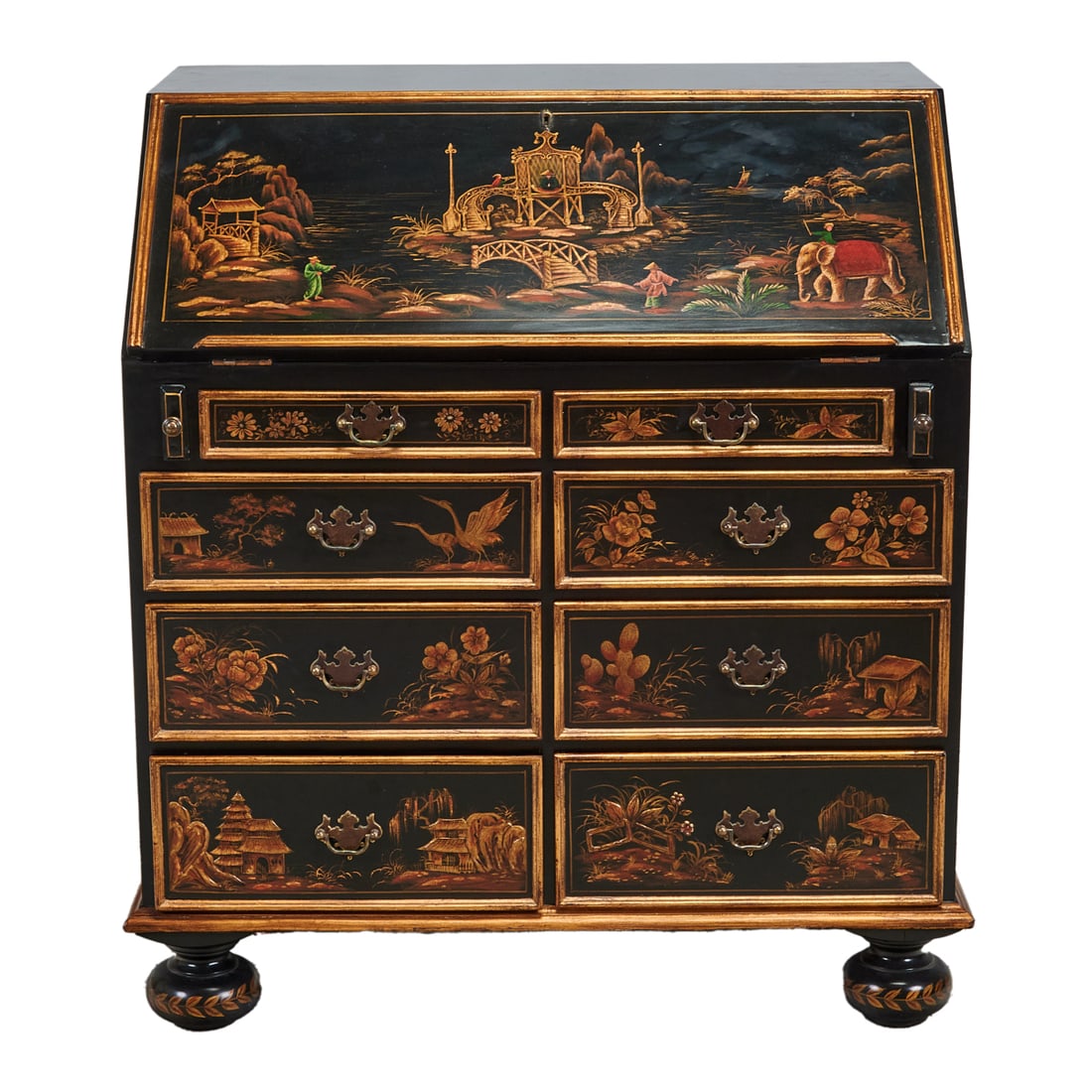 Chinoiserie Secretary Desk with Black Finish and Decorative Carved DetailsBidhaus4.2(838)$1005 days Left