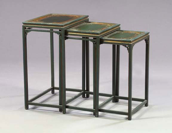 Ebonized, Polychromed Chairside Tables