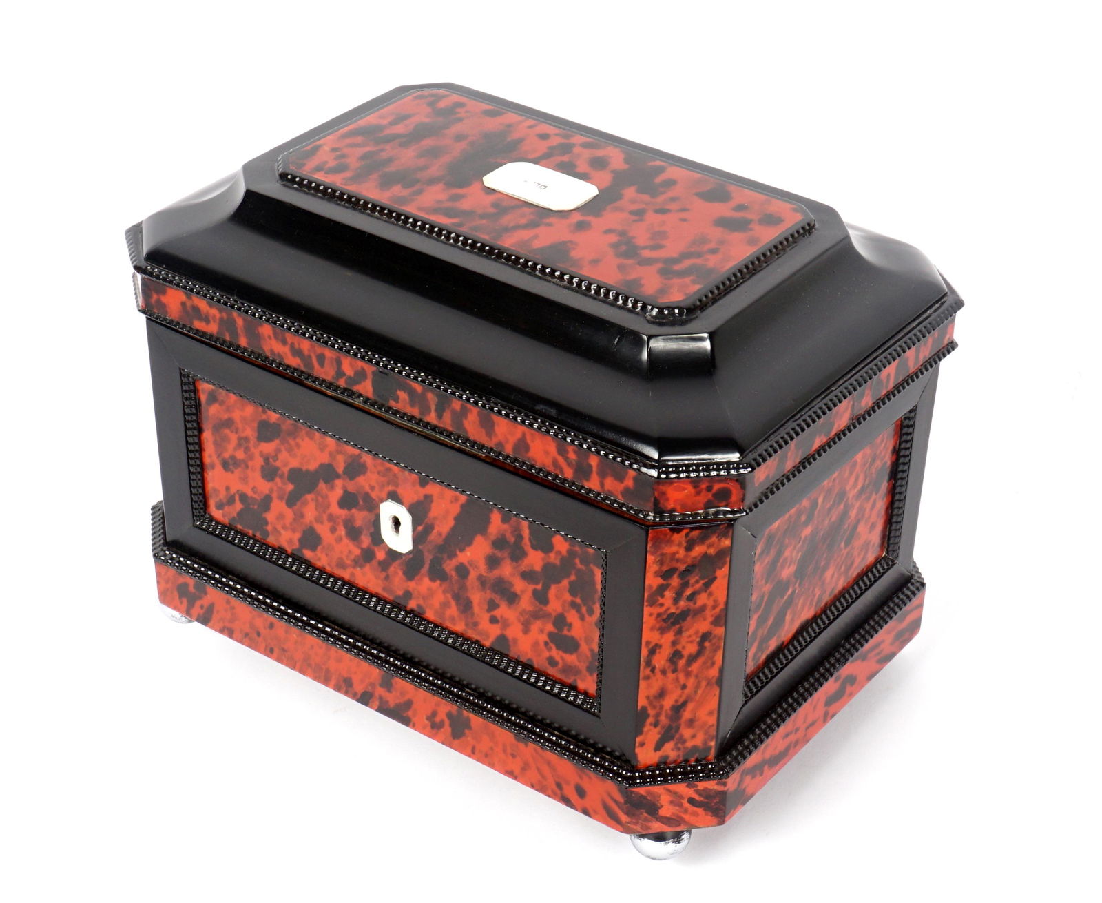 Ebonized Regency Red Tortoise Shell Tea Caddy