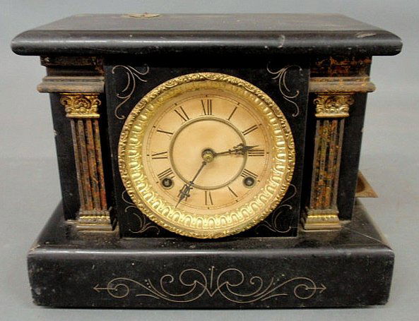 Antique French Black Slate Mantel Clock - Victorian Era with Ornate Gold DecorationBridge's Auction$50