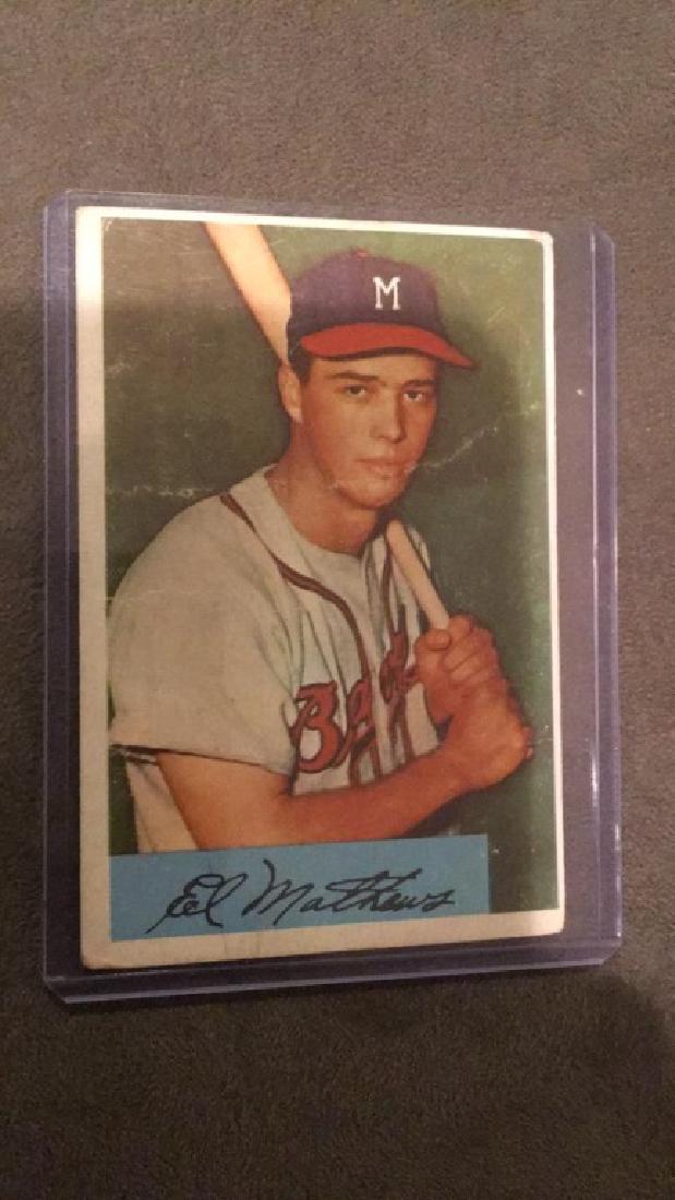 Sold1954 TOPPS ED MATHEWS BASEBALL CARDFAIRLY NICE CONDITION BUT OFF CENTERED SIDE TO SIDESee Sold Price