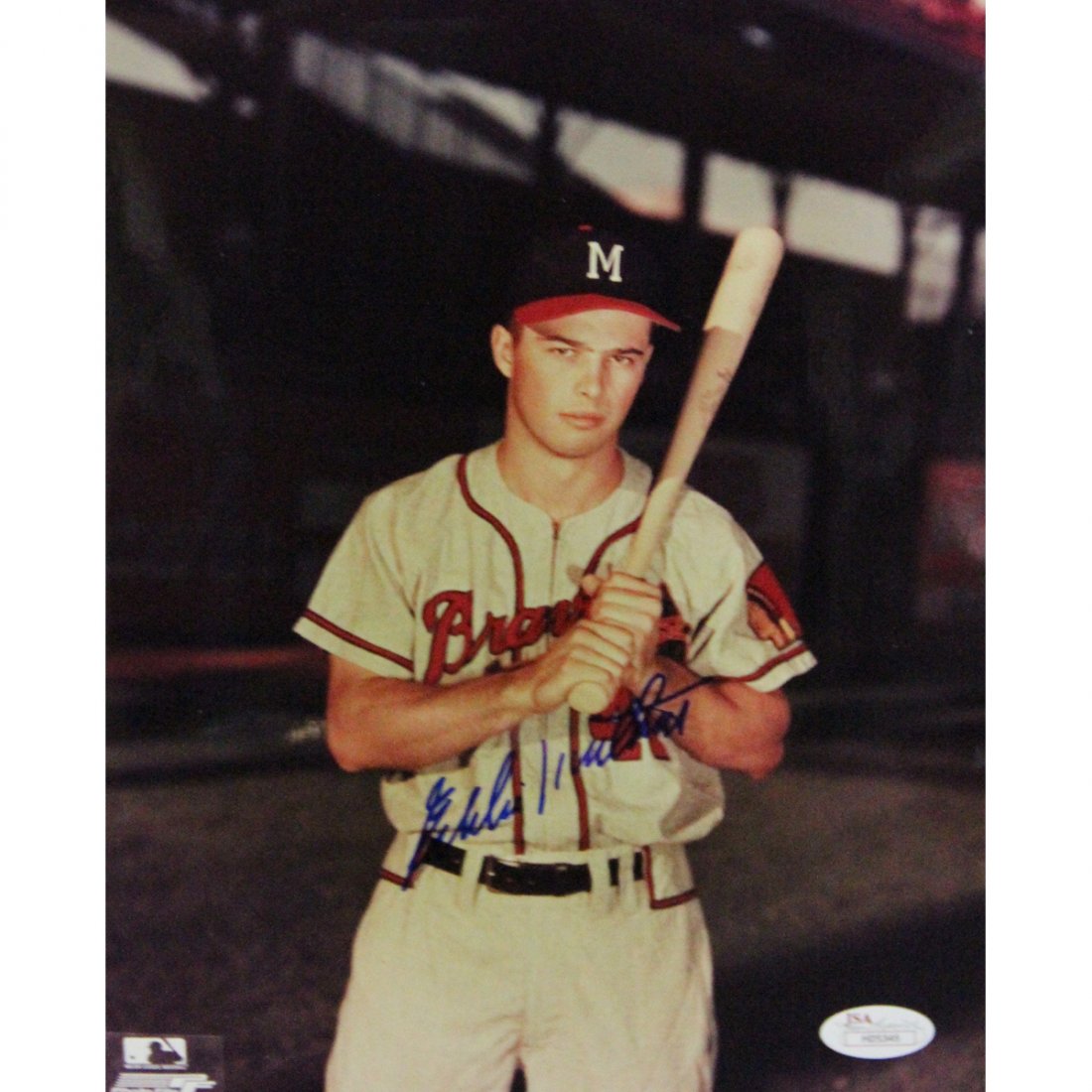 Eddie Mathews Signed 8x10 Holding Bat (JSA)