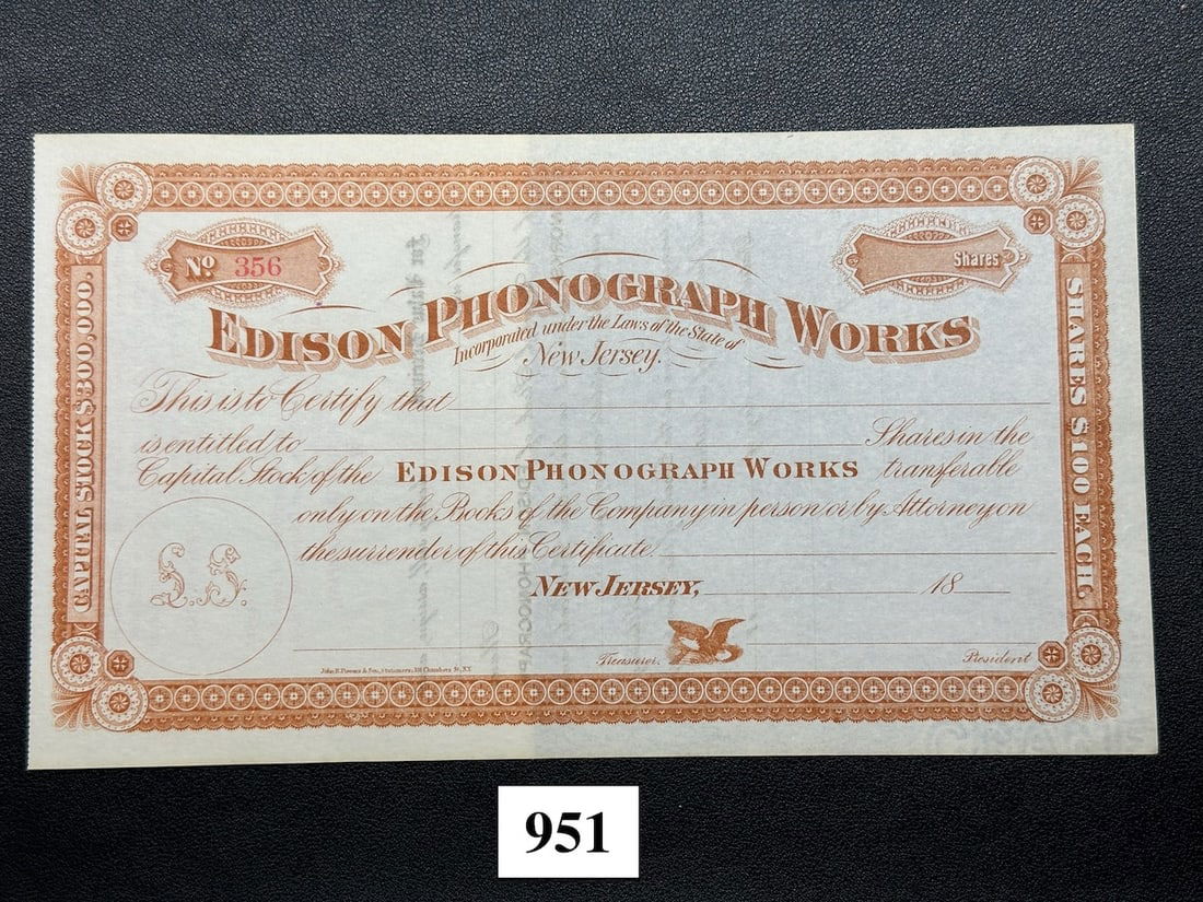 Thomas Edison – Edison Storage Battery Company – Blank Stock Certificate – IndustrJG Autographs4.6(102)$50