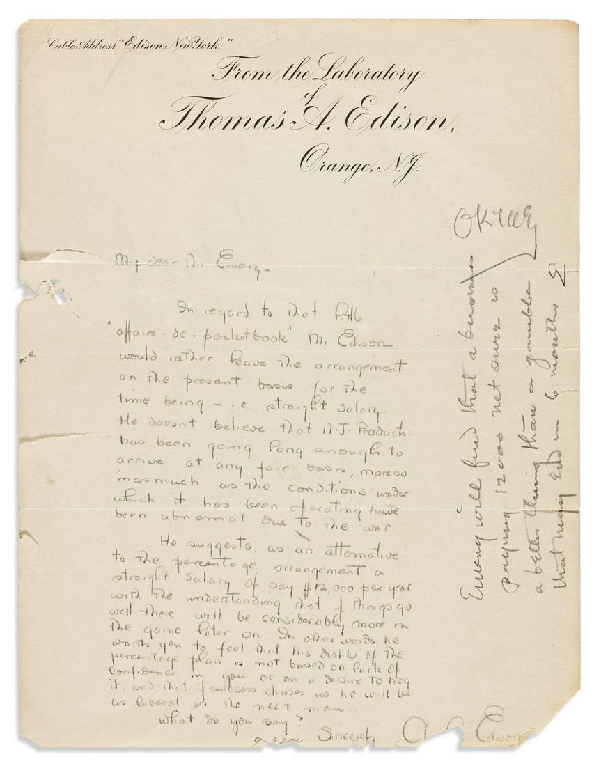 EDISON, THOMAS A. Two Autograph Notes Signed, to