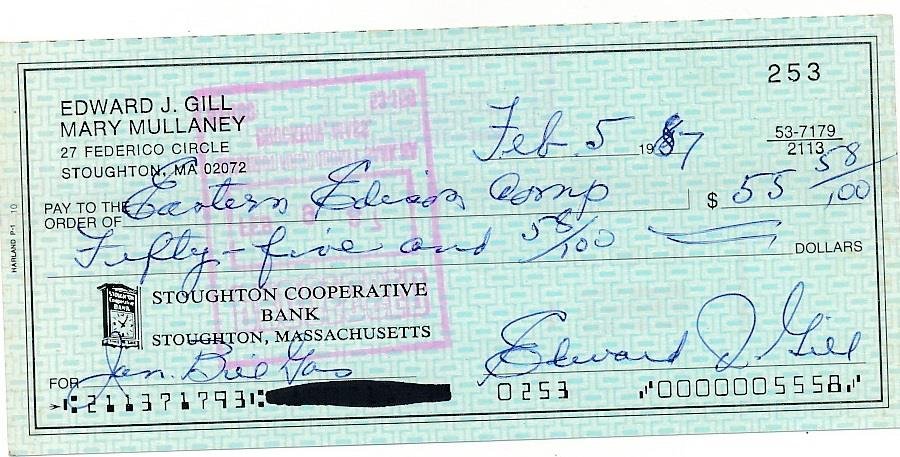Edward Gill- Signed Bank Check